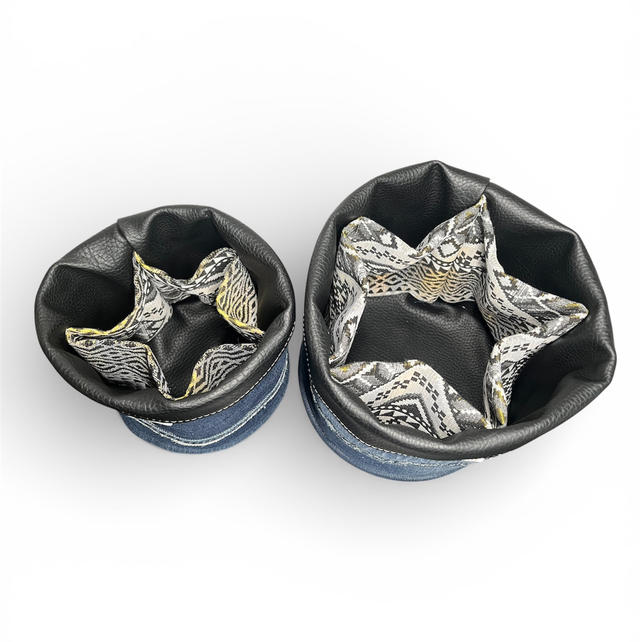 Une panière maline avec 5 poches intégrées pour organiser ton bazar quotidien. Conçu en jean robuste avec des poches en tissu d’ameublement et une base en similicuir automobile épais récupéré. Costaud et stylé, elle trouve sa place partout.